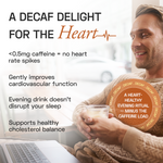 • This delicious decaf coffee is designed to support your heart health. Packed with 500mg of Chaga mushroom extract, known as the "heart's champion," it offers a blend of benefits: