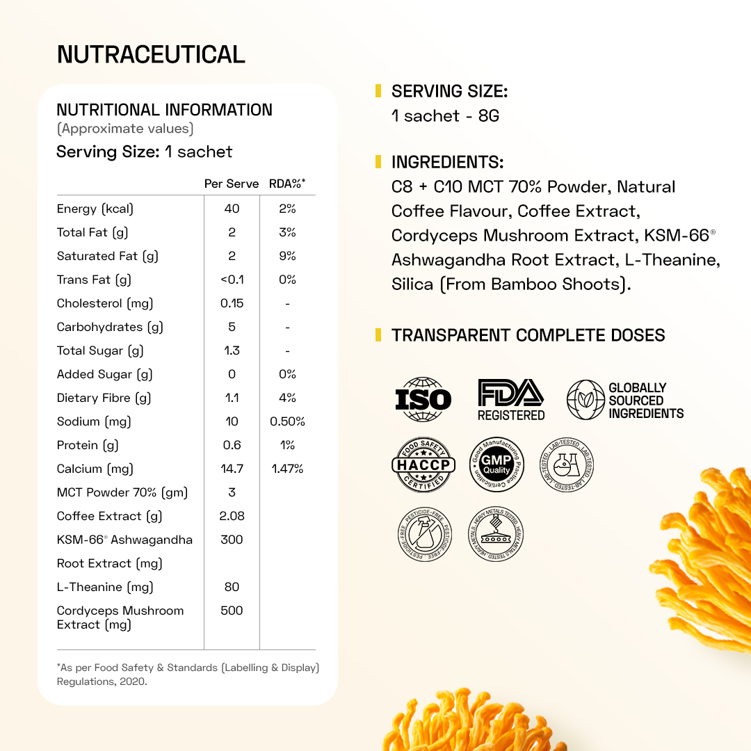 Apart from the exceptional benefits of 500mg Cordyceps, here are the heroes that enhance the overall experience of this Shroom Coffee: