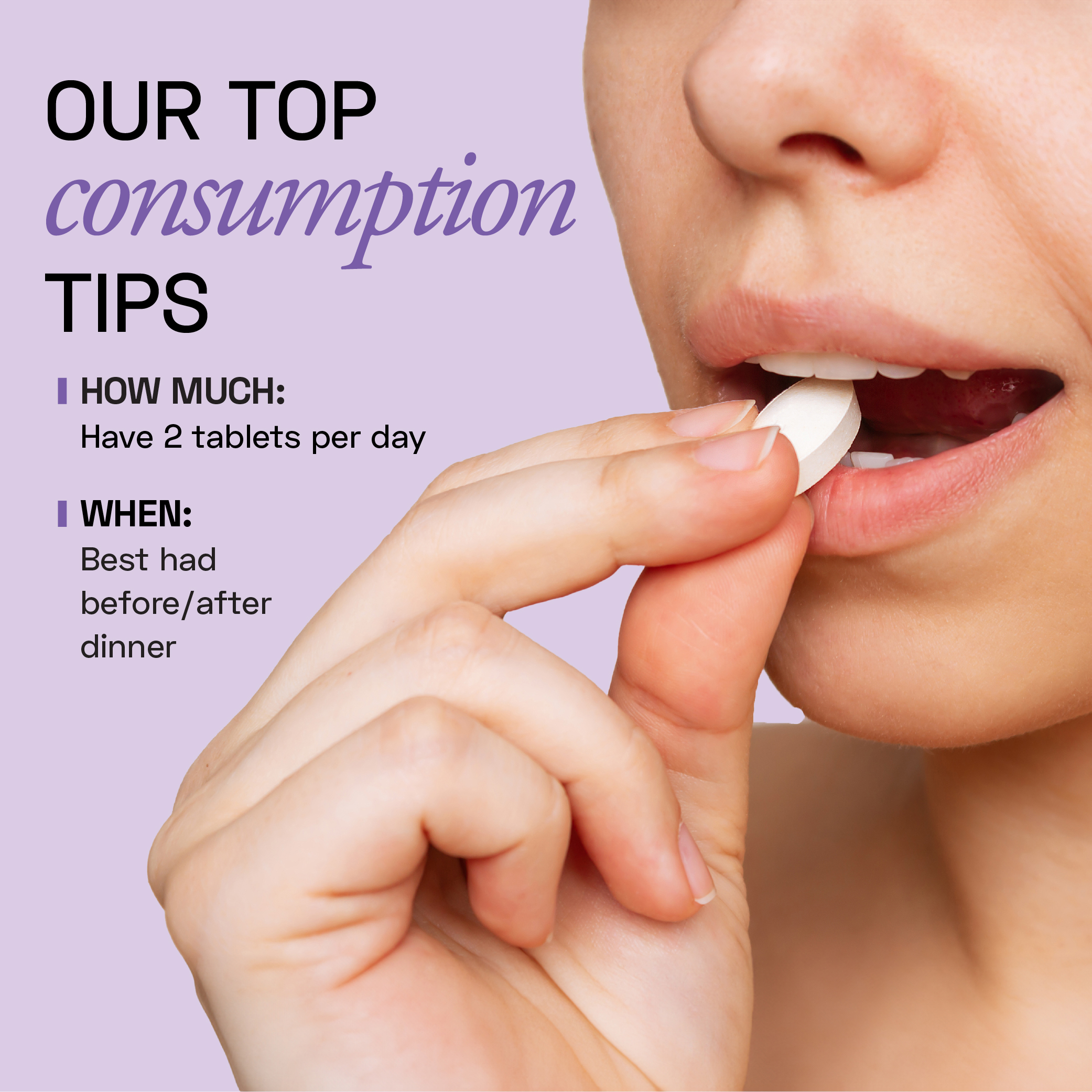 2 tablets are dosed to meet 100% daily requirement of 440mg of elemental magnesium. Though if favourable, you can consume 1 tablet instead of 2.