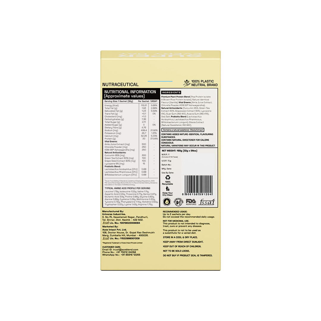 Ace Blend is a 99% bioavailable blend, that goes beyond the scope of protein to make powerful good health, easy.